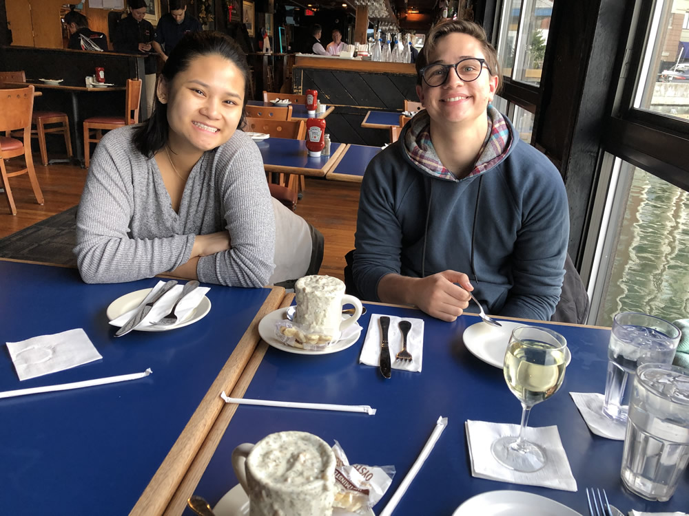 Briana and Nathan at winter break sharing some of the best clam chowder in the world with me.