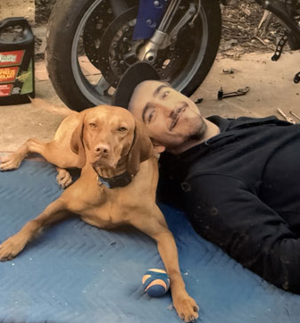 Cameron and Hunter and a motorcycle.