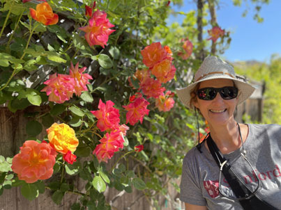 Nanette's Roses. Glasses to protect her post cataract surgery eyes for a couple months.