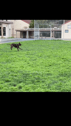 Rocky flying across Addison School field.