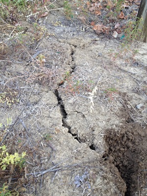 This photo shows the water that is left in the reservoir, about 15-20%. Meter readings before and after the loss indicate that 680,000 gallons or 2.1 acre ft. of water were lost. Much of this water found its way down through the upper part of block K6 to drains which drain into Domaine Chandon's reservoir. Fortunately Domaine Chandon has always been a good neighbor and has expressed that they are willing to help us get water back.