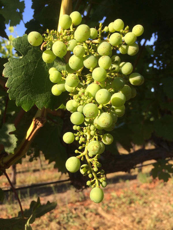 Here is the Malbec at Konrad Vineyards. My shot of bloom was out of focus. You can see some hail damage to the lower leaves on the left in this photo.