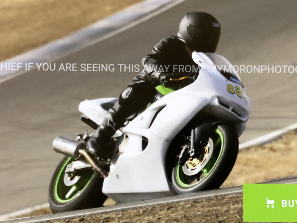 Here is Cameron on the Kawasaki at the track after some modifications to the fairings. Part of the original fairings blew off at 115mph.