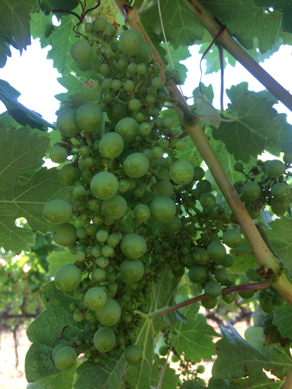 The picture below shows a very bimodal grape size distribution in this bunch at Camalie. This is not typical but is rather very unusual. I have never seen anything like this in 15 years of grape growing. It looks as though half of the flowers pollinated one day and the rest pollinated a couple weeks later.