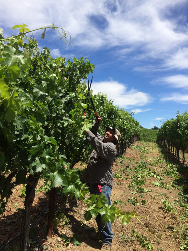 8/14/15 August Vineyards. Met with Ryan from Seneval and he seemed happy with the state of the Malbec there. Below is a picture of Ramon at August Vineyards. We're estimating 5-6 tons vs. the 7 ton yield the vineyard has reportedly had the last three years. This is an eyeball estimate only. Effects of the cold fruit set are not really noticeable here now. The within cluster uniformity looks good.