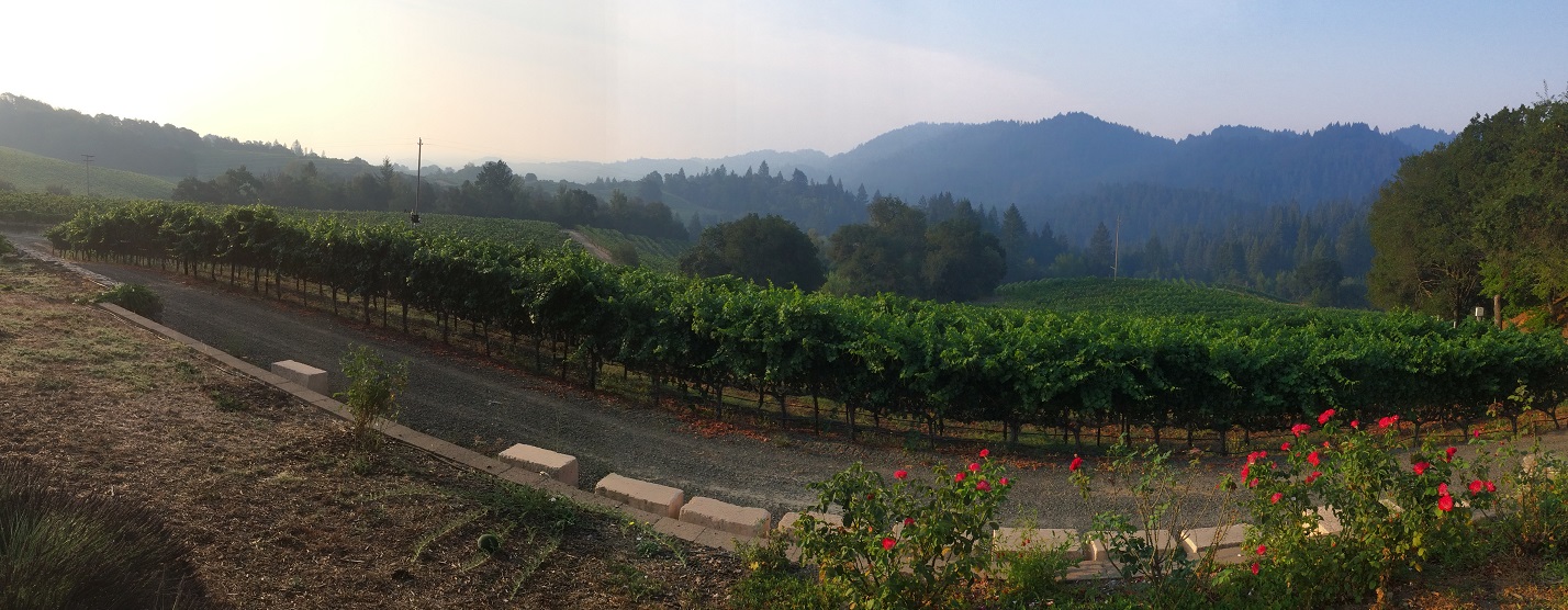 9/13/15 HEAT BREAKS and RAIN. Odd weather in the last 24 hours. Cool yesterday until a wind came up and blew hot air in around 4:00pm. Then last night around 5:00am we had a little rain, only .03 inches but enough to wet the ground. Not enough to make the Mt. Veeder clay slippery which would make our harvest activity very difficult and dangerous.