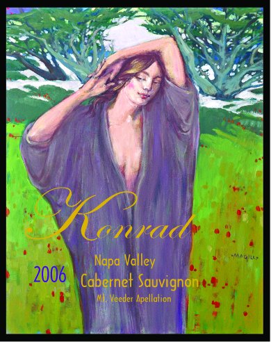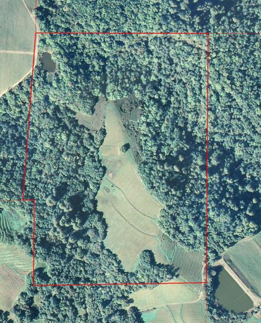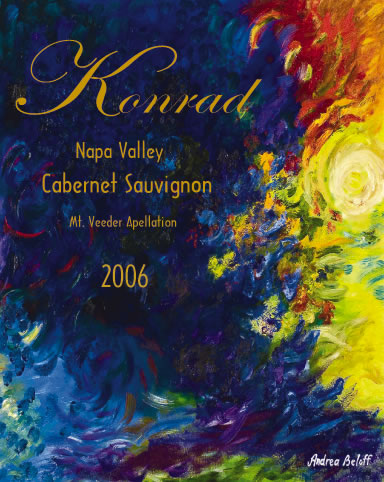 Konrad Vinyards satellite view with row directions visible, North is strait up on this map; year unknown. Elevation 1040 ft. at the base of block K6 up to 1320 ft. at the top of block K1. The reservoir is located further uphill at 1440 ft. based on a Google terrain map which can be found on the Mt. Veeder Appellation Website.